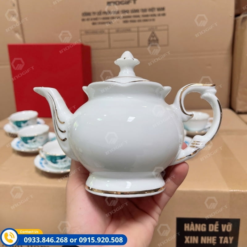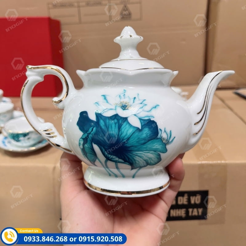 Với xưởng gốm sứ tại Bát Tràng, INOGIFT nhận sản xuất, in logo hoặc thông điệp tri ân lên sản phẩm theo yêu cầu. Các mẫu bộ ấm chén hoa sen giá rẻ được kiểm soát chặt chẽ từ khâu tạo dáng đến khâu hoàn thiện, giúp doanh nghiệp sở hữu món quà tinh tế, sang trọng nhưng vẫn tiết kiệm chi phí.
